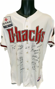 The 2011 MLB Taiwan All-Star Series was a successful five-game exhibition tour where MLB All-Stars played the Chinese Taipei national baseball team in sold-out stadiums across Taiwan, showcasing top MLB talent against local heroes like Chien-Ming Wang, with the MLB team winning most matchups in a highly anticipated event that highlighted baseball's popularity in Taiwan and its stars. This is a 2011 MLB All-Star Taiwan Series Team Signed/Team Issued Ryan Roberts MLB Majestic Authentic Cool Base D-Backs, Player Game Jersey, Size 46. Thirty Team Player/Manager/Coaches Hand Signed Signatures Include: Bruce Bochy MGR, Robinson Cano 24, Curtis Granderson 13, Pablo Sandoval 48, Rick Honeycutt, Emilio Bonifacio 1, Andres Torres 56, Logan Morrison 5, Jeremy Guthrie 46, Phil Coke 40, Ramon Rameriz 52, Drew Butera 41, Rich Thompson 63, Erik Aybar 2, Ryan Roberts 1, Danny Valencia 35, Ron Wotus 23, Jose Veras 43, LaTroy Hawkins 32 plus 10. Amazing bold black full pristine on jeysey front signatures. 2011 All-Star Patch, right sleeve, 2011 Taiwan Patch top right front and team 2011 Taiwan Tag as shown. Athlon acquired directly from MLB Player Ryan Roberts, along with other game used items. Only the players were issued these game jerseys and ultra rare. Beckett Authentication Services Signature Review Order ID #101146 and Review Order Item ID #122112. Amazing one of a kind team signed authentic player direct collectible !