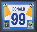 This Autographed White Pro Style Framed Jersey has been Personally Signed by Aaron Donald of the Los Angeles Rams. This item is 100% Authentic to include a hologram by Beckett Authentication Services. This item will come with an affixed Beckett Authentication Services (BAS) authentication sticker, which includes a scannable QR code to verify authenticity. Please note that Beckett no longer provides serial-numbered COA cards, and the attached BAS sticker will serve as the complete authentication for this item. This is a BAS Witnessed Protection Program item which means a Beckett Authentication Service representative was present when this item was being signed. We conducted an autograph signing with Aaron Donald where multiples of the same item were signed. While the photographs are representative of this item, the size, placement and strength of the signature may vary. Each item is hand signed, therefore, each autograph is unique. This item can be verified through BAS Witnessed. This item has been professionally framed to overall dimensions of approximately 32 x 37 inches. This is a X-Large sized, non-branded, custom-stitched Framed Jersey. This jersey will be framed to order, it will take 3-4 days from purchase date for it to ship.