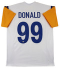 This Autographed White Pro Style Jersey has been Personally Signed by Aaron Donald of the Los Angeles Rams. This item is 100% Authentic to include a hologram by Beckett Authentication Services. This item will come with an affixed Beckett Authentication Services (BAS) authentication sticker, which includes a scannable QR code to verify authenticity. Please note that Beckett no longer provides serial-numbered COA cards, and the attached BAS sticker will serve as the complete authentication for this item. This is a BAS Witnessed Protection Program item which means a Beckett Authentication Service representative was present when this item was being signed. We conducted an autograph signing with Aaron Donald where multiples of the same item were signed. While the photographs are representative of this item, the size, placement and strength of the signature may vary. Each item is hand signed, therefore, each autograph is unique. This item can be verified through BAS Witnessed. This is a X-Large sized, non-branded, custom-stitched Jersey.