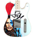 Step into the realm of sonic warfare with the Aerosmith Steven Tyler Signed "Warrior of Sound" Fender Tele Graphics Guitar, a one-of-a-kind tribute to the legendary frontman. Crafted from a Fender Squier Telecaster, this guitar is not only a stunning instrument but also a visual masterpiece that captures the essence of Steven Tyler's dynamic stage presence. Adorned with a vibrant and colorful photo of Tyler, complete with warpaint streaks on his face and hair, this guitar exudes the raw energy and intensity of his music.