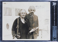 This Autographed 8x10 Photo with the inscription of "Pasadena 1931" has been Personally Signed by Albert Einstein. This item is 100% Authentic, it comes slabbed and authenticated by Beckett Authentication Services. The authenticity can be verified on Beckett Authentication Services website. A superb signed photograph of Einstein with his wife Elsa while disembarking from the SS Belgenland upon their arrival at Pier I in San Diego on December 30, 1930. Signed by Einstein in blue fountain ink at top right, adding "Pasadena 1931." A minor.25" tear at bottom left margin and a moderate fold at top right corner, neither one of which materially detracts from this excellent image. Overall very good condition. While this photograph is dated 1931 and in Pasadena, the photo itself was taken on December 30, 1930 as the Einsteins arrived in San Diego.