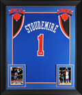 This Autographed Blue Pro Style Framed Jersey has been Personally Signed by Amar'e Stoudemire of the New York Knicks. This item is 100% Authentic to include a hologram by Beckett Authentication Services. This item will come with an affixed Beckett Authentication Services (BAS) authentication sticker, which includes a scannable QR code to verify authenticity. Please note that Beckett no longer provides serial-numbered COA cards, and the attached BAS sticker will serve as the complete authentication for this item. This is a BAS Witnessed Protection Program item which means a Beckett Authentication Service representative was present when this item was being signed. We conducted an autograph signing with Amar'e Stoudemire where multiples of the same item were signed. While the photographs are representative of this item, the size, placement and strength of the signature may vary. Each item is hand signed, therefore, each autograph is unique. This item can be verified through BAS Witnessed. This item has been professionally framed to overall dimensions of approximately 32 x 37 inches. This is a X-Large sized, non-branded, custom-stitched Framed Jersey. This jersey will be framed to order, it will take approximately 3-4 business days from purchase date for it to ship.