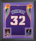 This Autographed Purple Pro Style Framed Jersey has been Personally Signed by Amar'e Stoudemire of the Phoenix Suns. This item is 100% Authentic to include a hologram by Beckett Authentication Services. This item will come with an affixed Beckett Authentication Services (BAS) authentication sticker, which includes a scannable QR code to verify authenticity. Please note that Beckett no longer provides serial-numbered COA cards, and the attached BAS sticker will serve as the complete authentication for this item. This is a BAS Witnessed Protection Program item which means a Beckett Authentication Service representative was present when this item was being signed. We have multiples of this same item. While the photographs are representative of this item, the size, placement and strength of the signature may vary. Each item is hand signed, therefore, each autograph is unique. This item has been professionally framed to overall dimensions of approximately 32 x 37 inches. This is a X-Large sized, non-branded, custom-stitched Framed Jersey. This jersey will be framed to order, it will take 3-4 days from purchase date for it to ship.