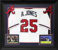 This Autographed White Pro Style Framed Jersey has been Personally Signed by Andruw Jones of the Atlanta Braves. This item is 100% Authentic to include a hologram by Beckett Authentication Services. This item will come with an affixed Beckett Authentication Services (BAS) authentication sticker, which includes a scannable QR code to verify authenticity. Please note that Beckett no longer provides serial-numbered COA cards, and the attached BAS sticker will serve as the complete authentication for this item. We have multiples of this same item. While the photographs are representative of this item, the size, placement and strength of the signature may vary. Each item is hand signed, therefore, each autograph is unique. This item has been professionally framed to overall dimensions of approximately 32 x 37 inches. This is a X-Large sized, non-branded, custom-stitched Framed Jersey. This jersey will be framed to order, it will take 3-4 days from purchase date for it to ship.