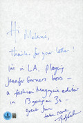 This Autographed 6x9 Personal Letter with the inscription of "Hi Melanie, Thanks For Your Letter! I'm In LA. Playing Jennifer Garners Boss. A Fashion Magazine Editor In 13 Going On 30.Great Fun Take Care." has been Personally Signed by Andy Serkis of Lord of the Rings. This item is 100% Authentic to include a hologram by Beckett Authentication Services. This item will come with an affixed Beckett Authentication Services (BAS) authentication sticker, which includes a scannable QR code to verify authenticity. Please note that Beckett no longer provides serial-numbered COA cards, and the attached BAS sticker will serve as the complete authentication for this item. The authenticity can be verified on Beckett Authentication Services website.