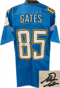 This is a new, in stock, Antonio Gates signed San Diego Light Blue unlicensed Custom Stitched Pro Style Football Jersey with fully stitched twill numbers on the front and back and players name plate, there are NO LOGOS, TAGS, BRAND NAMES or PATCHES ON THIS JERSEY & IS NOT AN AUTHENTIC OFFICIALLY LICENSED JERSEY, 100% polyester, made in the Philippines. Size XL (48/50). Beckett Witnessed Authentication Sticker and Beckett Certificate of Authenticity.