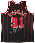 This Autographed Black Mitchell & Ness Hardwood Classics Swingman Jersey has been Personally Signed by Dennis Rodman of the Chicago Bulls. This item is 100% Authentic to include a hologram by Beckett Authentication Services. This item will come with an affixed Beckett Authentication Services (BAS) authentication sticker, which includes a scannable QR code to verify authenticity. Please note that Beckett no longer provides serial-numbered COA cards, and the attached BAS sticker will serve as the complete authentication for this item. This is a BAS Witnessed Protection Program item which means a Beckett Authentication Service representative was present when this item was being signed. We conducted an autograph signing with Dennis Rodman where multiples of the same item were signed. While the photographs are representative of this item, the size, placement and strength of the signature may vary. Each item is hand signed, therefore, each autograph is unique. This item can be verified through BAS Witnessed. This is a X-Large sized, non-branded, custom-stitched Jersey.