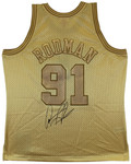 This Autographed Gold Mitchell & Ness Hardwood Classics Swingman Jersey has been Personally Signed by Dennis Rodman of the Chicago Bulls. This item is 100% Authentic to include a hologram by Beckett Authentication Services. This item will come with an affixed Beckett Authentication Services (BAS) authentication sticker, which includes a scannable QR code to verify authenticity. Please note that Beckett no longer provides serial-numbered COA cards, and the attached BAS sticker will serve as the complete authentication for this item. This is a BAS Witnessed Protection Program item which means a Beckett Authentication Service representative was present when this item was being signed. We conducted an autograph signing with Dennis Rodman where multiples of the same item were signed. While the photographs are representative of this item, the size, placement and strength of the signature may vary. Each item is hand signed, therefore, each autograph is unique. This item can be verified through BAS Witnessed. This is a X-Large sized, non-branded, custom-stitched Jersey.