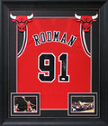 This Autographed Red Pro Style Framed Jersey has been Personally Signed by Dennis Rodman of the Chicago Bulls. This item is 100% Authentic to include a Certificate of Authenticity (COA) / hologram by JSA Witness. This is a JSA Witnessed Protection Program item which means a JSA representative was present when this item was being signed. We have multiples of this same item. While the photographs are representative of this item, the size, placement and strength of the signature may vary. Each item is hand signed, therefore, each autograph is unique. This is a X-Large sized, non-branded, custom-stitched Jersey. This jersey is professionally framed to approximately 32x37 inches. These jerseys are framed to order, it takes approximately 3-4 business days for framing to be completed.