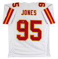 This Autographed White Pro Style Jersey has been Personally Signed by Chris Jones of the Kansas City Chiefs. This item is 100% Authentic to include a hologram by Beckett Authentication Services. This item will come with an affixed Beckett Authentication Services (BAS) authentication sticker, which includes a scannable QR code to verify authenticity. Please note that Beckett no longer provides serial-numbered COA cards, and the attached BAS sticker will serve as the complete authentication for this item. We have multiples of this same item. While the photographs are representative of this item, the size, placement and strength of the signature may vary. Each item is hand signed, therefore, each autograph is unique. This is a X-Large sized, non-branded, custom-stitched Jersey.