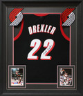 This Autographed Black Pro Style Framed Jersey has been Personally Signed by Clyde Drexler of the Portland Trail Blazers. This item is 100% Authentic to include a hologram by Beckett Authentication Services. This item may come with the new Beckett Authentication hologram that has a scannable QR code rather than the traditional COA. If you would like to have a COA, you are welcome to reach out to Beckett for a printed certification once you receive your item. This is a BAS Witnessed Protection Program item which means a Beckett Authentication Service representative was present when this item was being signed. We conducted an autograph signing with Clyde Drexler where multiples of the same item were signed. While the photographs are representative of this item, the size, placement and strength of the signature may vary. Each item is hand signed, therefore, each autograph is unique. This item can be verified through BAS Witnessed. This item has been professionally framed to overall dimensions of approximately 32 x 37 inches. This is a X-Large sized, non-branded, custom-stitched Framed Jersey. This jersey will be framed to order, it will take 3-4 days from purchase date for it to ship.
