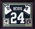 This Autographed Green Pro Style Framed Jersey has been Personally Signed by Darrelle Revis of the New York Jets. This item is 100% Authentic to include a hologram by Beckett Authentication Services. This item will come with an affixed Beckett Authentication Services (BAS) authentication sticker, which includes a scannable QR code to verify authenticity. Please note that Beckett no longer provides serial-numbered COA cards, and the attached BAS sticker will serve as the complete authentication for this item. This is a BAS Witnessed Protection Program item which means a Beckett Authentication Service representative was present when this item was being signed. We conducted an autograph signing with Darrelle Revis where multiples of the same item were signed. While the photographs are representative of this item, the size, placement and strength of the signature may vary. Each item is hand signed, therefore, each autograph is unique. This item can be verified through BAS Witnessed. This item has been professionally framed to overall dimensions of approximately 32 x 37 inches. This is a X-Large sized, non-branded, custom-stitched Framed Jersey. These jerseys are framed to order, it takes approximately 3-4 business days for framing to be completed.