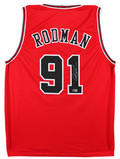 This Autographed Red Pro Style Jersey has been Personally Signed by Dennis Rodman of the Chicago Bulls. This item is 100% Authentic to include a hologram by Beckett Authentication Services. This item will come with an affixed Beckett Authentication Services (BAS) authentication sticker, which includes a scannable QR code to verify authenticity. Please note that Beckett no longer provides serial-numbered COA cards, and the attached BAS sticker will serve as the complete authentication for this item. This is a BAS Witnessed Protection Program item which means a Beckett Authentication Service representative was present when this item was being signed. We conducted an autograph signing with Dennis Rodman where multiples of the same item were signed. While the photographs are representative of this item, the size, placement and strength of the signature may vary. Each item is hand signed, therefore, each autograph is unique. This item can be verified through BAS Witnessed. This is a X-Large sized, non-branded, custom-stitched Jersey.