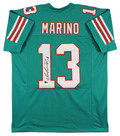 This Autographed Teal Pro Style Jersey has been Personally Signed by Dan Marino of the Miami Dolphins. This item is 100% Authentic to include a hologram by Beckett Authentication Services. This item will come with an affixed Beckett Authentication Services (BAS) authentication sticker, which includes a scannable QR code to verify authenticity. Please note that Beckett no longer provides serial-numbered COA cards, and the attached BAS sticker will serve as the complete authentication for this item. We have multiples of this same item. While the photographs are representative of this item, the size, placement and strength of the signature may vary. Each item is hand signed, therefore, each autograph is unique. This is a X-Large sized, non-branded, custom-stitched Jersey.