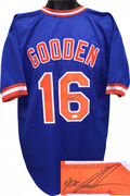 This is a new, in stock, Doc Gooden signed Blue Throwback Unlicensed Custom Stitched Baseball Jersey with fully stitched twill numbers on the front and back, there are NO LICENSED TEAM LOGOS, TAGS, BRAND NAMES or PATCHES ON THIS JERSEY & IS NOT AN AUTHENTIC OFFICIALLY LICENSED JERSEY, 100% polyester, made in the Philippines. Size XL (48/50). JSA Hologram and Certificate of Authenticity.