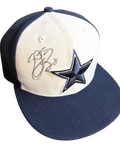 Official Dallas Cowboys New Era 59FIFTY fitted hat hand-signed by Hall of Fame running back Emmitt Smith in bold black marker on the front panel. A premium collectible honoring the NFL’s all-time leading rusher and Cowboys legend.