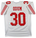 This Autographed White Pro Style Jersey has been Personally Signed by George Odum of the San Francisco 49ers. This item is 100% Authentic to include a hologram by Beckett Authentication Services. This item will come with an affixed Beckett Authentication Services (BAS) authentication sticker, which includes a scannable QR code to verify authenticity. Please note that Beckett no longer provides serial-numbered COA cards, and the attached BAS sticker will serve as the complete authentication for this item. This is a BAS Witnessed Protection Program item which means a Beckett Authentication Service representative was present when this item was being signed. We conducted an autograph signing with George Odum where multiples of the same item were signed. While the photographs are representative of this item, the size, placement and strength of the signature may vary. Each item is hand signed, therefore, each autograph is unique. This item can be verified through BAS Witnessed. This is a X-Large sized, non-branded, custom-stitched Jersey.