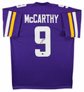 This Autographed Purple Pro Style Jersey has been Personally Signed by J.J. McCarthy of the Minnesota Vikings. This item is 100% Authentic to include a hologram by Beckett Authentication Services. This item will come with an affixed Beckett Authentication Services (BAS) authentication sticker, which includes a scannable QR code to verify authenticity. Please note that Beckett no longer provides serial-numbered COA cards, and the attached BAS sticker will serve as the complete authentication for this item. This is a BAS Witnessed Protection Program item which means a Beckett Authentication Service representative was present when this item was being signed. We conducted an autograph signing with J.J. McCarthy where multiples of the same item were signed. While the photographs are representative of this item, the size, placement and strength of the signature may vary. Each item is hand signed, therefore, each autograph is unique. This item can be verified through BAS Witnessed. This is a X-Large sized, non-branded, custom-stitched Jersey.