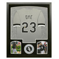 Jermaine Dye professionally framed hand signed, custom stitched baseball jersey with premium suede matte, wood frame and plexiglass cover.