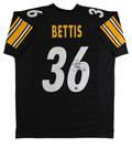 This Autographed Black Jersey has been Personally Signed by Jerome Bettis of the Pittsburgh Steelers. This item is 100% Authentic to include a hologram by Beckett Authentication Services. This item will come with the new Beckett Authentication hologram that has a scannable QR code rather than the traditional COA. If you would like to have a COA, you are welcome to reach out to Beckett for a printed certification once you receive your item. This is a BAS Witnessed Protection Program item which means a Beckett Authentication Service representative was present when this item was being signed. This is a stock item. We conducted an autograph signing with Jerome Bettis and we have several of these available. The one you will receive will be of equal quality to the one pictured. This item can be verified through BAS. This is a X-Large sized, non-branded, custom-stitched Jersey. Press Pass Collectibles only offers Authentic Autographs by Jerome Bettis through Signings, In-Person Signings or Private Collections to include a 100% money back Lifetime Authenticity Guarantee.