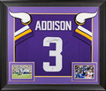 This Autographed Purple Pro Style Framed Jersey has been Personally Signed by Jordan Addison of the Minnesota Vikings. This item is 100% Authentic to include a hologram by Beckett Authentication Services. This item will come with an affixed Beckett Authentication Services (BAS) authentication sticker, which includes a scannable QR code to verify authenticity. Please note that Beckett no longer provides serial-numbered COA cards, and the attached BAS sticker will serve as the complete authentication for this item. This is a BAS Witnessed Protection Program item which means a Beckett Authentication Service representative was present when this item was being signed. We conducted an autograph signing with Jordan Addison where multiples of the same item were signed. While the photographs are representative of this item, the size, placement and strength of the signature may vary. Each item is hand signed, therefore, each autograph is unique. This item can be verified through BAS Witnessed. This item has been professionally framed to overall dimensions of approximately 32 x 37 inches. This is a X-Large sized, non-branded, custom-stitched Framed Jersey. This jersey will be framed to order, it will take 3-4 days from purchase date for it to ship.