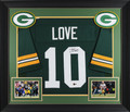This Autographed Green Pro Style Framed Jersey has been Personally Signed by Jordan Love of the Green Bay Packers. This item is 100% Authentic to include a hologram by Beckett Authentication Services. This item will come with an affixed Beckett Authentication Services (BAS) authentication sticker, which includes a scannable QR code to verify authenticity. Please note that Beckett no longer provides serial-numbered COA cards, and the attached BAS sticker will serve as the complete authentication for this item. This is a BAS Witnessed Protection Program item which means a Beckett Authentication Service representative was present when this item was being signed. We conducted an autograph signing with Jordan Love where multiples of the same item were signed. While the photographs are representative of this item, the size, placement and strength of the signature may vary. Each item is hand signed, therefore, each autograph is unique. This item can be verified through BAS Witnessed. This item has been professionally framed to overall dimensions of approximately 32 x 37 inches. This is a X-Large sized, non-branded, custom-stitched Framed Jersey. This jersey will be framed to order, it will take approximately 4-5 business days from purchase date for it to ship.