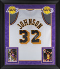 Lakers Magic Johnson Signed White M&N 1984-85 HWC Swingman Framed Jersey BAS Wit