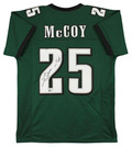 This Autographed Green Pro Style Jersey has been Personally Signed by LeSean McCoy of the Philadelphia Eagles. This item is 100% Authentic to include a hologram by Beckett Authentication Services. This item will come with an affixed Beckett Authentication Services (BAS) authentication sticker, which includes a scannable QR code to verify authenticity. Please note that Beckett no longer provides serial-numbered COA cards, and the attached BAS sticker will serve as the complete authentication for this item. This is a BAS Witnessed Protection Program item which means a Beckett Authentication Service representative was present when this item was being signed. We conducted an autograph signing with LeSean McCoy where multiples of the same item were signed. While the photographs are representative of this item, the size, placement and strength of the signature may vary. Each item is hand signed, therefore, each autograph is unique. This item can be verified through BAS Witnessed. This is a X-Large sized, non-branded, custom-stitched Jersey.