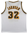 Magic Johnson Authentic Signed White Pro Style Jersey w/ Black #'s BAS Witnessed