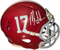 During his sophomore season in 2009 Mark Ingram won Alabama's first-ever Heisman Trophy, set the Crimson Tide's single-season rushing record with 1,658 yards, was voted to the AP All-America first-team and helped lead the Tide to an undefeated 14–0 season including a victory in the 2010 BCS National Championship Game. Mark Ingram has hand signed this Alabama Crimson Tide #17 Riddell Speed Mini Helmet. Bold White Full Pristine Signature with #22 inscription. Ingram Hologram and Beckett Witnessed #WF69926. Image of actual item in stock - as shown