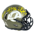 Marshall Faulk, Jerome Bettis & Eric Dickerson Signed HOF 99 Inscription Los Angeles Rams Salute to Service Mini Football Helmet (Beckett)