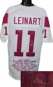 This is a new, in stock, Matt Leinart signed Maroon Throwback unlicensed Custom Stitched Football Jersey with embroidered stats, with fully stitched twill numbers on the front and back and players name plate, there are NO LOGOS, TAGS, BRAND NAMES or PATCHES ON THIS JERSEY & IS NOT AN AUTHENTIC OFFICIALLY LICENSED NCAA JERSEY, 100% polyester, made in the Philippines. Size XL (48/50). Leinart Hologram and Certificate of Authenticity from Athlon Sports Collectibles.