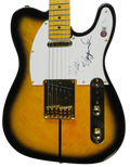 Celebrate the legacy of country music legend Merle Haggard with this stunning signed Merle Haggard guitar. This beautiful electric guitar, designed in the classic Fender Telecaster style, features a rich sunburst-to-black finish that exudes timeless elegance and perfectly complements Haggard's enduring influence on country and western music.