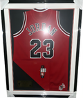 Michael Jordan played 15 seasons in the NBA, winning six NBA championships. He was integral in popularizing basketball and the NBA around the world, becoming a global cultural icon. His individual accolades include six NBA Finals MVP awards, ten NBA scoring titles, five NBA MVP awards, 10 All-NBA First Team designations, nine All-Defensive First Team honors, fourteen NBA All-Star Game selections, three NBA All-Star Game MVP awards, three NBA steals titles, and the 1988 NBA Defensive Player of the Year Award. Jordan was inducted into the Naismith Memorial Basketball Hall of Fame in 2009. Michael Jordan has hand signed this Chicago Bulls Nike NBA Authentics Pro Cut #23 Red Jersey+4 Length. This is matted and framed to overall size 32x42. Jordan has signed this jersey in silver ink on the number 2 and is limited edition number 88/323. Jersey has a " Mr June" patch on the lower right. with plaque attached that reads "Michael Jordan-Mr June" with statistics. Brand new hi-end 2025 Premium Custom Framing. Upper Deck Hologram #BAF24888 & Upper Deck Certificate of Authenticity with Registration CardImage of actual item in stock - as shown