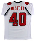 This Autographed White Pro Style Jersey has been Personally Signed by Mike Alstott of the Tampa Bay Buccaneers. This item is 100% Authentic to include a Certificate of Authenticity (COA) / hologram by Beckett Authentication Services. This is a BAS Witnessed Protection Program item which means a Beckett Authentication Service representative was present when this item was being signed. This is a stock item. We conducted an autograph signing with Mike Alstott and we have several of these available. The one you will receive will be of equal quality to the one pictured. This item can be verified through BAS Witnessed. This is a X-Large sized, non-branded, custom-stitched Jersey.