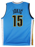 This Autographed Light Blue Throwback Pro Style Jersey has been Personally Signed by Nikola Jokic of the Denver Nuggets. This item is 100% Authentic to include a hologram by Beckett Authentication Services. This item will come with an affixed Beckett Authentication Services (BAS) authentication sticker, which includes a scannable QR code to verify authenticity. Please note that Beckett no longer provides serial-numbered COA cards, and the attached BAS sticker will serve as the complete authentication for this item. This is a BAS Witnessed Protection Program item which means a Beckett Authentication Service representative was present when this item was being signed. We have multiples of this same item. While the photographs are representative of this item, the size, placement and strength of the signature may vary. Each item is hand signed, therefore, each autograph is unique. This is a X-Large sized, non-branded, custom-stitched Jersey.