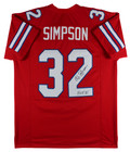 This Autographed Red Pro Style Jersey with the inscription of "HOF 85" has been Personally Signed by O.J. Simpson of the San Francisco 49ers. This item is 100% Authentic to include a Certificate of Authenticity (COA) / hologram by JSA Witness. This is a JSA Witnessed Protection Program item which means a JSA representative was present when this item was being signed. We conducted an autograph signing with O.J. Simpson where multiples of the same item were signed. While the photographs are representative of this item, the size, placement and strength of the signature may vary. Each item is hand signed, therefore, each autograph is unique. This item can be verified through JSA Witness. This is a X-Large sized, non-branded, custom-stitched Jersey.