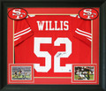 This Autographed Red Pro Style Framed Jersey has been Personally Signed by Patrick Willis of the San Francisco 49ers. This item is 100% Authentic to include a hologram by Beckett Authentication Services. This item will come with an affixed Beckett Authentication Services (BAS) authentication sticker, which includes a scannable QR code to verify authenticity. Please note that Beckett no longer provides serial-numbered COA cards, and the attached BAS sticker will serve as the complete authentication for this item. This is a BAS Witnessed Protection Program item which means a Beckett Authentication Service representative was present when this item was being signed. We conducted an autograph signing with Patrick Willis where multiples of the same item were signed. While the photographs are representative of this item, the size, placement and strength of the signature may vary. Each item is hand signed, therefore, each autograph is unique. This item can be verified through BAS Witnessed. This item has been professionally framed to overall dimensions of approximately 32 x 37 inches. This is a X-Large sized, non-branded, custom-stitched Framed Jersey. This jersey will be framed to order, it will take 3-4 days from purchase date for it to ship.