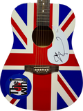 This guitar is signed by Pete Townshend—legendary guitarist and principal songwriter of The Who. Known for his iconic windmill strums and explosive stage presence, Townshend penned rock epics like “Baba O’Riley,” “My Generation,” and Tommy. His signature on this guitar embodies decades of groundbreaking artistry and raw power. Authenticated and preserved, it’s a showpiece for collectors who admire the fusion of lyrical depth and sonic rebellion.