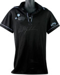 This PHIL MICKELSON AUTHENTIC SIGNED MATCH USED BARCLAYS GOLF SHIRT PSA/DNA #X31563 has been certified authentic. This is a match used Barclays Callaway golf shirt. There is a tear on the right chest, only the "BA" of Barclays remains. It will include the PSA/DNA numbered hologram and matching Certificate of Authenticity.