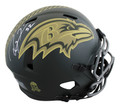 This Autographed Alternate 2025 Salute To Service IV Riddell Authentic Full Size Speed Proline Helmet has been Personally Signed by Ray Lewis of the Baltimore Ravens. This item is 100% Authentic to include a hologram by Beckett Authentication Services. This item will come with an affixed Beckett Authentication Services (BAS) authentication sticker, which includes a scannable QR code to verify authenticity. Please note that Beckett no longer provides serial-numbered COA cards, and the attached BAS sticker will serve as the complete authentication for this item. This is a BAS Witnessed Protection Program item which means a Beckett Authentication Service representative was present when this item was being signed. We conducted an autograph signing with Ray Lewis where multiples of the same item were signed. While the photographs are representative of this item, the size, placement and strength of the signature may vary. Each item is hand signed, therefore, each autograph is unique. This item can be verified through BAS Witnessed.