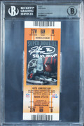 This Autographed February 5, 2006 Super Bowl XL Ticket Stub with the inscription of "SB XL MVP" has been Personally Signed by Hines Ward of the Pittsburgh Steelers. This item is 100% Authentic, it comes slabbed and authenticated by Beckett Authentication Services. We conducted an autograph signing with Hines Ward where multiples of the same item were signed. While the photographs are representative of this item, the size, placement and strength of the signature may vary. Each item is hand signed, therefore, each autograph is unique. This item can be verified through BAS Slabbed.