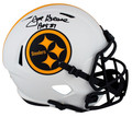 This Autographed Alternate Lunar Riddell Full Size Speed Rep Helmet with the inscription of "HOF 87" has been Personally Signed by Joe Greene of the Pittsburgh Steelers. This item is 100% Authentic to include a hologram by Beckett Authentication Services. This item will come with the new Beckett Authentication hologram that has a scannable QR code rather than the traditional COA. If you would like to have a COA, you are welcome to reach out to Beckett for a printed certification once you receive your item. This is a BAS Witnessed Protection Program item which means a Beckett Authentication Service representative was present when this item was being signed. This is a stock item. We conducted an autograph signing with Joe Greene and we have several of these available. The one you will receive will be of equal quality to the one pictured. This item can be verified through BAS Witnessed.