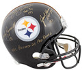 This Autographed Full Size Rep Helmet with the inscription of "HOF 90 (9) (Lambert), HOF 88 (8) (Ham) & (7) NFL Record 24 Pro Bowls (Russell)" has been Personally Signed by Jack Lambert, Jack Ham & Andy Russell of the Pittsburgh Steelers. This item is 100% Authentic and comes with a PSA/DNA Certification Card and a matching numbered Hologram. This is a PSA in the Presence Authenticated item which means a PSA representative was present when this item was being signed. The authenticity can be verified on Professional Sports Authenticator website.