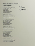 A clean and striking signed lyric sheet featuring legendary guitarist and songwriter Steve Cropper, best known for his work with Booker T. & the M.G.’s and as a key architect of the classic Stax soul sound. This piece highlights the iconic song “Knock on Wood,” co-written by Cropper and Eddie Floyd, and is signed prominently in bold black marker.