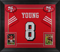This Autographed w/ Dropshadow Red Pro Style Framed Jersey has been Personally Signed by Steve Young of the San Francisco 49ers. This item is 100% Authentic to include a hologram by Beckett Authentication Services. This item will come with an affixed Beckett Authentication Services (BAS) authentication sticker, which includes a scannable QR code to verify authenticity. Please note that Beckett no longer provides serial-numbered COA cards, and the attached BAS sticker will serve as the complete authentication for this item. We conducted an autograph signing with Steve Young where multiples of the same item were signed. While the photographs are representative of this item, the size, placement and strength of the signature may vary. Each item is hand signed, therefore, each autograph is unique. This item can be verified through BAS. This item has been professionally framed to overall dimensions of approximately 32 x 37 inches. This is a X-Large sized, non-branded, custom-stitched Framed Jersey. This jersey will be framed to order, it will take 3-4 days from purchase date for it to ship.