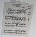 This signed sheet music is for the Stranger Things (Theme), autographed by its composers Kyle Dixon and Michael Stein of the electronic band S U R V I V E.