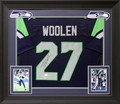This Autographed Navy Blue Pro Style Framed Jersey has been Personally Signed by Tariq Woolen of the Seattle Seahawks. This item is 100% Authentic to include a Certificate of Authenticity (COA) / hologram by JSA Witness. This is a JSA Witnessed Protection Program item which means a JSA representative was present when this item was being signed. We conducted an autograph signing with Tariq Woolen where multiples of the same item were signed. While the photographs are representative of this item, the size, placement and strength of the signature may vary. Each item is hand signed, therefore, each autograph is unique. This item can be verified through JSA Witness. This item has been professionally framed to overall dimensions of approximately 32 x 37 inches. This is a X-Large sized, non-branded, custom-stitched Framed Jersey. This jersey will be framed to order, it will take 3-4 days from purchase date for it to ship.