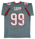 This Autographed Grey Pro Style Jersey with the inscription of "HOF 13" has been Personally Signed by Warren Sapp of the Tampa Bay Buccaneers. This item is 100% Authentic to include a hologram by Beckett Authentication Services. This item will come with the new Beckett Authentication hologram that has a scannable QR code rather than the traditional COA. If you would like to have a COA, you are welcome to reach out to Beckett for a printed certification once you receive your item. This is a BAS Witnessed Protection Program item which means a Beckett Authentication Service representative was present when this item was being signed. This is a stock item. We conducted an autograph signing with Warren Sapp and we have several of these available. The one you will receive will be of equal quality to the one pictured. This item can be verified through BAS Witnessed. This is a X-Large sized, non-branded, custom-stitched Jersey.